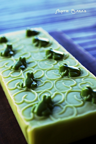 Here inverted stamp lily pads are featured on their own and combined with cold process frog embeds: