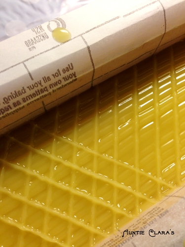 - When I’ve gone down in the one direction I go in the other direction making marks down the length of the mould ending up with a diamond pattern. I try to keep the diagonal lines close together – to get as many diamonds as possible on the top of each bar.