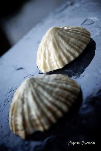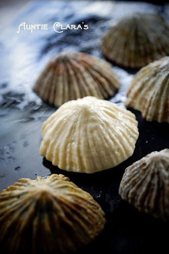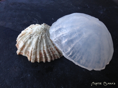 A limpet is a sea-snail with an un-coiled, conical shell and limpet shells were everywhere. Many of them were the size of a small tea-cup or saucer. Many were fairly flat but some were tall and nicely dome-shaped – and just about the perfect 100g size. The soapmaker’s brain did what soapmakers’ brains tend to do: it saw a soap mould.