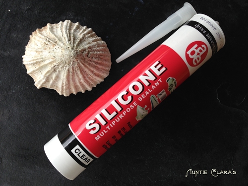 A soap mould needs to be either collapsible or flexible in order for the soap to safely come out once it has hardened. Unless making collapsible, box-shaped moulds out of wood, the material of choice is silicone. Silicone comes in many forms but the cheapest by far is often the caulking silicone that you buy in tubes in supermarkets or hardware stores. I happened to have a tube of caulking silicone conveniently tucked away in a closet, so I picked up the tallest, most dome-shaped limpet shell I could find and brought it home. With those longitudinal ridges and latitudinal rings the limpet shells have a lovely rough, all-natural texture.