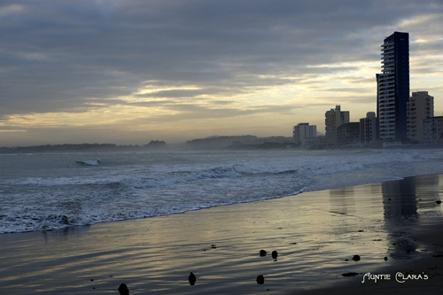 In any case Strand Beach is a beautiful, long, flat beach with soft sand where swimmers and surfers enjoy warm, clear water in summer and beachcombers like myself find interesting bits and pieces of marine life after winter storms. Right now it’s winter here and a couple of days ago, just around full moon the beach was a proper treasure trove of shells, kelp, sea sponges and very big mermaid’s purses, ie egg capsules of skates, rays or oviparous sharks.
