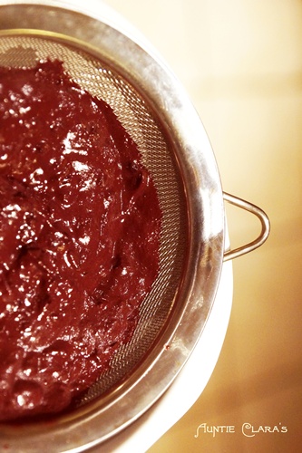 The first step was to get the pips out of the olives. My kitchen is rather well equipped with all manners of gadgets and in the far corner of a drawer I knew had an olive de-pipper that I had never used. This part of the process turned out to be a complete non-event: it was easy as pie to make pitted olives. The weight of my pitted olives was about a quarter of the weight of the olive oil in the formula.