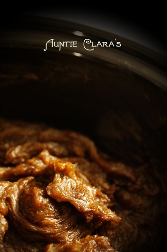 About 30 minutes later I went back to turn off the slow cooker when lo and behold, there were some promising looking clumps on the bottom of the pot! Another good stir and I had beautiful pudding! About an hour later the paste in the pot looked exactly like the pictures of Beldi soap I had seen: a very glossy, deep amber-coloured gel that could be piled up high while still very soft to the touch. Funny how that saved itself!