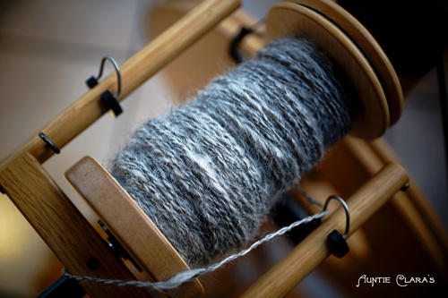 After a couple of hours by the spinning wheel I had a strong yarn that would withstand rubbing and felting – and be coarse enough to be gently exfoliating.
