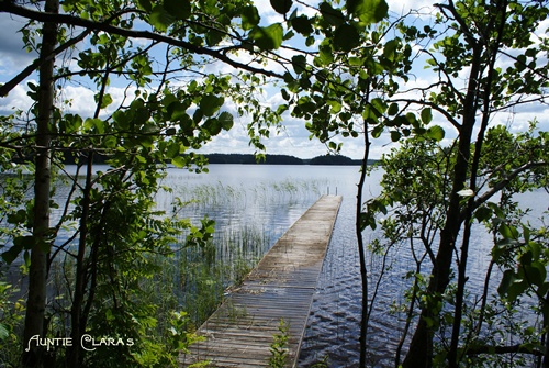 When we visited Grampa the day was partly overcast, but the water in the lake was beautifully warm with water-lilies bobbing by the reeds. Water was carried, the sauna was heated and fresh, young, leafy silver birch twigs were tied to a bunch, a vihta, for the purpose of swatting the warm, moist skin to increase blood flow and help open up the pores.