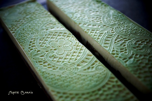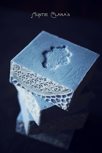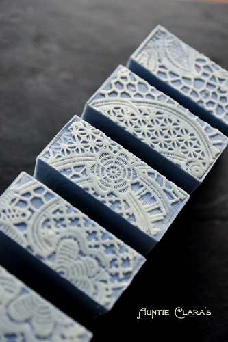These are some other versions of soap made with DIY silicone texture mats. I’ve used plastic doilies as negatives for my mats but there are lots of other textured items one could use, wallpaper, tiles, carvings etc.