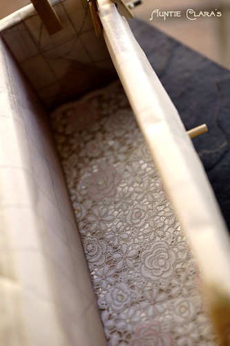 My first task was to make sure that the lace was flat and mark the outline of the base of the intended mould on the lace.