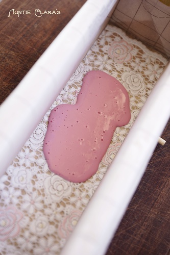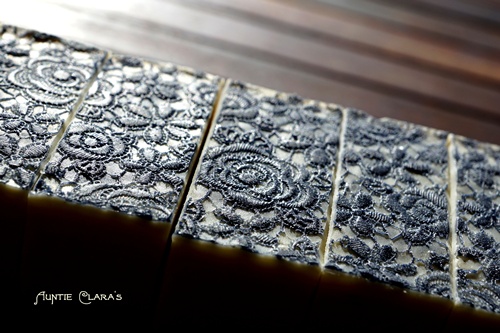 So, when Zacil in Germany sent me – here in South Africa – a piece of the plastic lace that her mom had sent her from Mexico I thought it was lovely and very special. By making a plan to incorporate that lace in my soap it would reflect something of Zacil and her sweet mom too, making it all the more precious.
