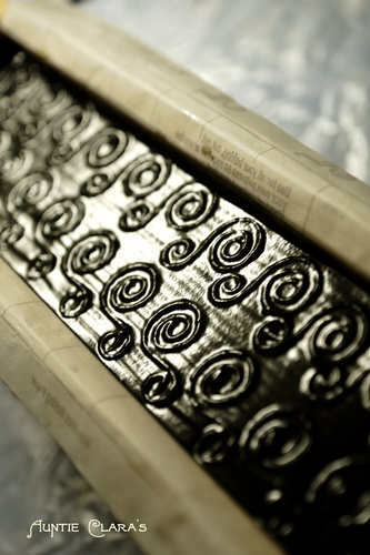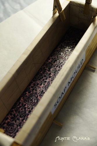 Since I was going to use my texture mat in my soap mould there was no need to make things overly complicated; I could use my soap mould as a mould for my silicone casting project. I usually line my wooden moulds with silicone-coated baking paper and that would do well for this project too.