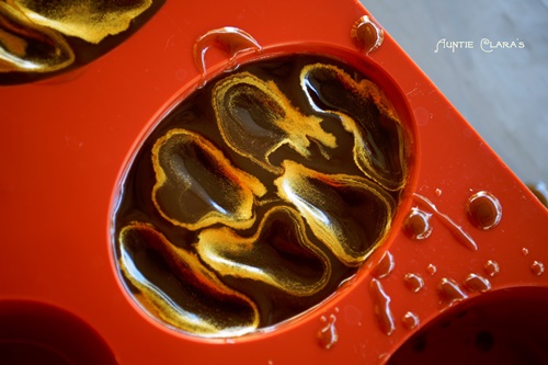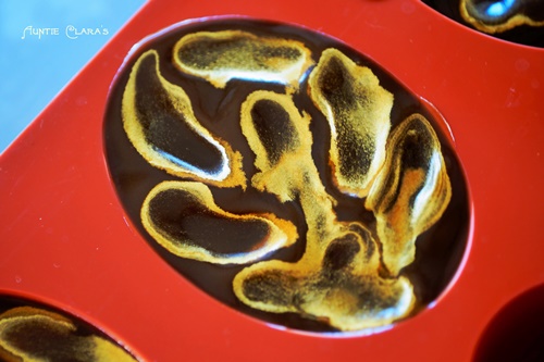 After a couple of hours the colour had already turned nice and dark and my soapy chocolate eggs were looking the part!