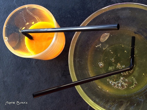 For the leftovers of my little soap batch I had planned a special project. I had already come up with one way to use my straw, but how about an additional straw technique – just for giggles?