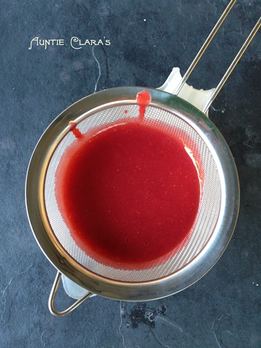 I made a fine puree of my fresh strawberries, strained out the seeds and added the puree to my lye water.