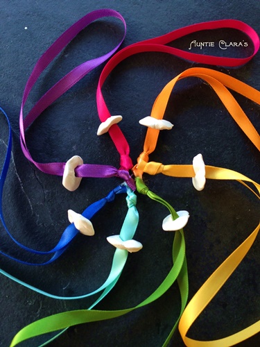 I put a little Presstick (Blue Tack) cuff on each ribbon to keep them from sinking in too deep – or accidentally be pulled out.