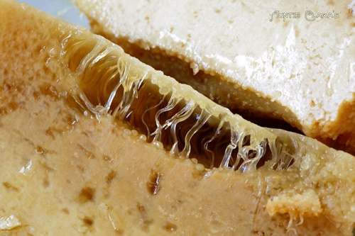 Honey crystals can easily give brown specks in soap. The best way to avoid brown honey specs is to make sure that the honey is well diluted in water before mixing with the oils so that you don’t have any crystals left.