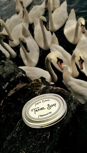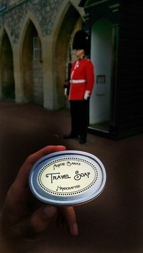 Well, having made my observations about supermarket soap on different continents I relaxed and stuck to sightseeing. This time around I had promised the family that I wouldn’t make soap while on vacation so I didn’t. But, I made up for that by taking plenty of soap pictures. The Travel Soap tin which always tagged along, either in my bag or pocket, was frequently hauled out and made to pose in likely and unlikely places. It saw more public rest rooms than it cares to remember, it got rained on in London, it almost dropped off the top of the Rockefeller Center in New York and I very nearly lost it to a peckish swan in Windsor. But it withstood all that and kept its contents nice and dry. And yes, it does feel great to be able to wash your hands with well-crafted artisan soap wherever your travels take you.