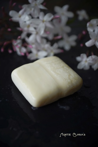 On Friday a month had passed since the soap was made and so I took some follow-up pictures to show what the soap looks like at this point in time. Now, many will argue that any good soap needs at least a six week cure and it’s true that this soap will continue to slowly shrink and lose water content over time. But water evaporation is by far the most dramatic in the first four weeks; i.e. what the soap looks like after four weeks is a good indication of what it will end up looking like after a year – especially as it contains no colourants that have the potential to morph, bleed or fade.