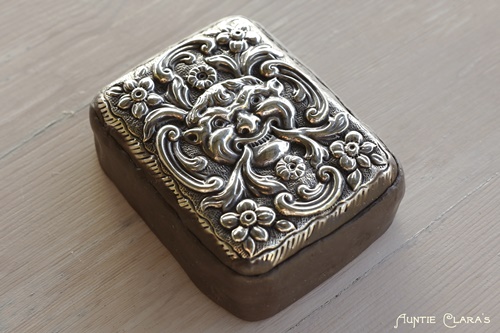Like you, I have learned to resist viewing every object as a mould. However, I’m fascinated with trinket boxes of all kinds…always have been. I, too, would have had to pick up the silver cigarette case. I’ve not ventured in making silicone moulds, but I was thinking how hard it must have been to pour that silicone over your precious keepsake. I found myself holding my breath looking at the photo of the pour. Well done, it’s beautiful. And who knew we had a patron saint? Love the depth of your research.