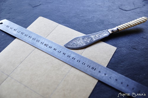 Then I scored all the lines with the very pretty butter knife that I also picked up at the same time as the silver case. The butter knife has a blunt edge and is well-suited for the purpose.
