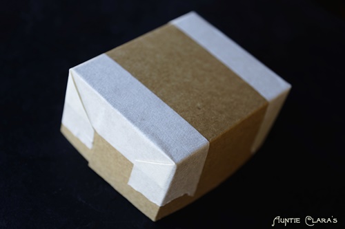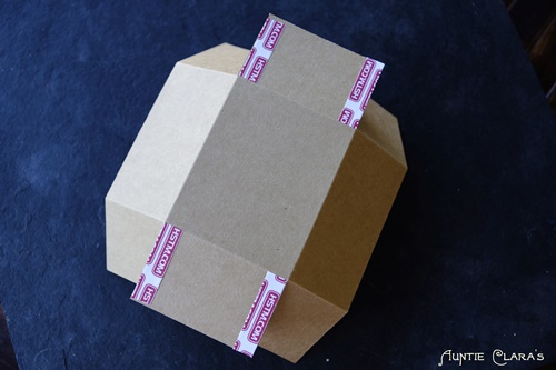 Then I stuck the box flaps in place with the double-sided tape and secured the corners with masking tape