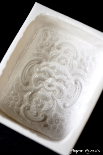 When it comes to moulds with fine detail like this one, my personal preference is for soap of a solid colour. Also, the more opaque the soap, the better the detail shows up. Once again I can only marvel at how accurately the silicone and then the soap picks up the detail of the original object.