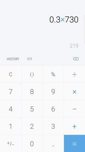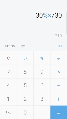 30% = 30/100 = 0.3 so if you don’t have a handy %-button on your calculator you can do it like this and it will give you the same answer: